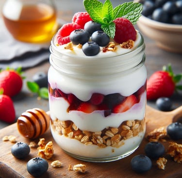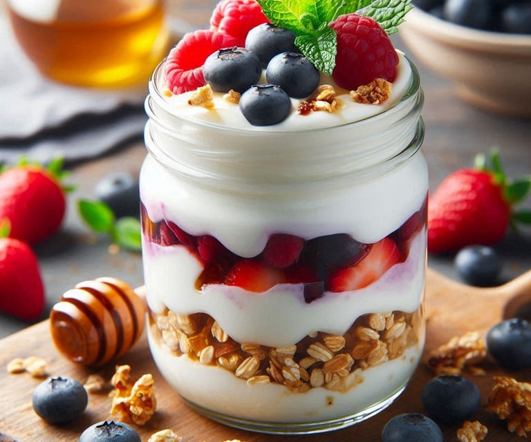 بارفيه الزبادي والفواكه ليس فقط لذيذًا ومنعشًا، بل هو أيضًا غني بالبروتينات، الألياف، والفيتامينات الضرورية للجسم. يمكن تقديمه كوجبة إفطار سريعة، وجبة خفيفة في منتصف النهار، أو حتى كحلوى خفيفة بعد العشاء. جرب هذا البارفيه المنعش واستمتع بفوائده الصحية ونكهاته المتنوعة هذا الصيف.