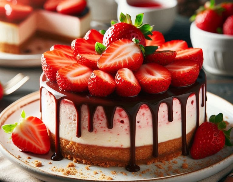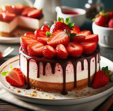 الآن حان وقت إعداد طبقة الفراولة الشهية التي ستضفي نكهة مميزة ومظهر جذاب لتشيز كيك الفراولة. يمكن استخدام الفراولة الطازجة أو المجمدة بحسب التوفر. يتم هرس الفراولة مع كمية بسيطة من السكر حتى نحصل على صلصة فراولة ناعمة. يُمكن أيضاً إضافة قليل من عصير الليمون لتعزيز النكهة. تُسكب صلصة الفراولة فوق الطبقة الكريمية وتُفرد بالتساوي.