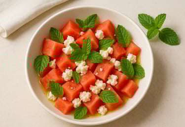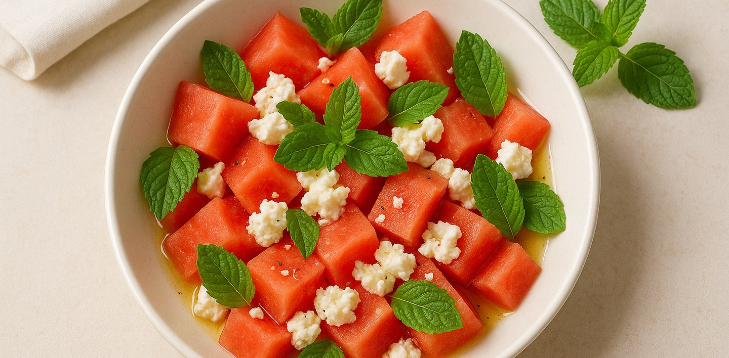 🥗 1. سلطة البطيخ بالجبن الفيتا والنعناع